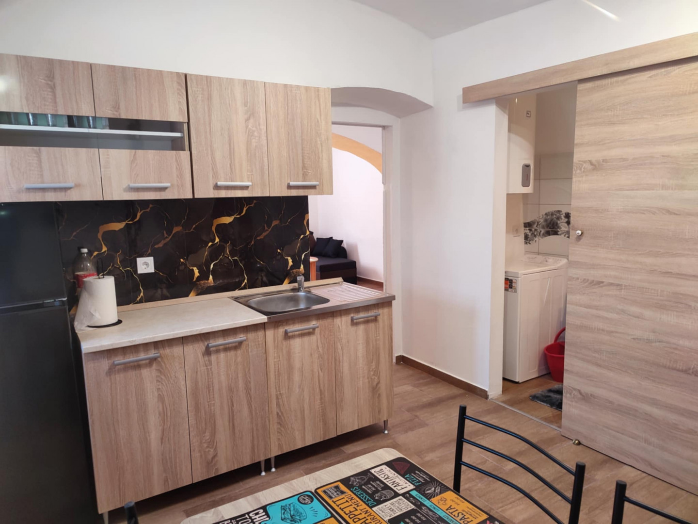 A lakás berendezett, gépesített.